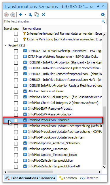 Das Transformationsszenario Info-Pilot Produktion Standard auf die ausgewählte Rahmendatei anwenden: