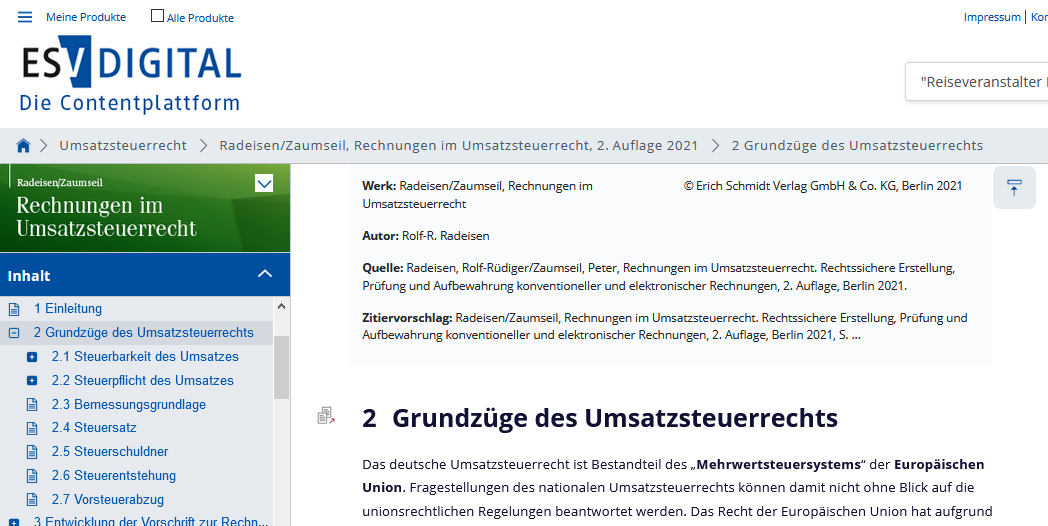 Der Aufbau des Zitiervorschlags richtet sich immer nach den Definitionen im Dokument "Quellennachweise in ESV-Digital", das hier